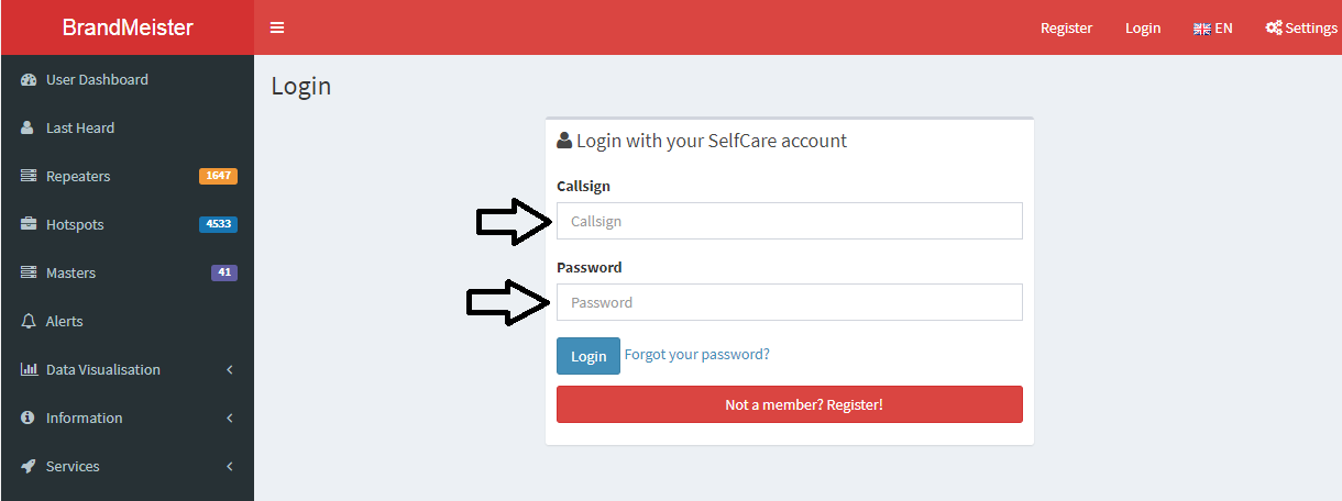 1. Συνδεθείτε στο BrandMeister Selfcare